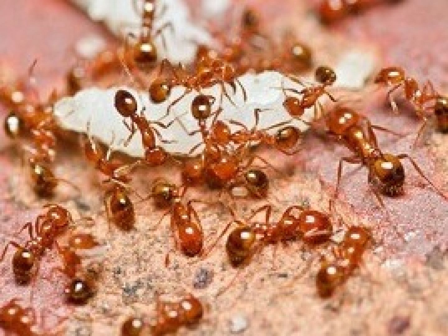Pharaoh ants are tiny, honey colored ants with black and red markings on the abdomen. They have multiple queens and sub-colonies. New colonies spring up by budding. Budding is when a group of reproductive and worker ants leave the original colony to start their own. The budding process is why this particular species are so hard to control and eliminate.