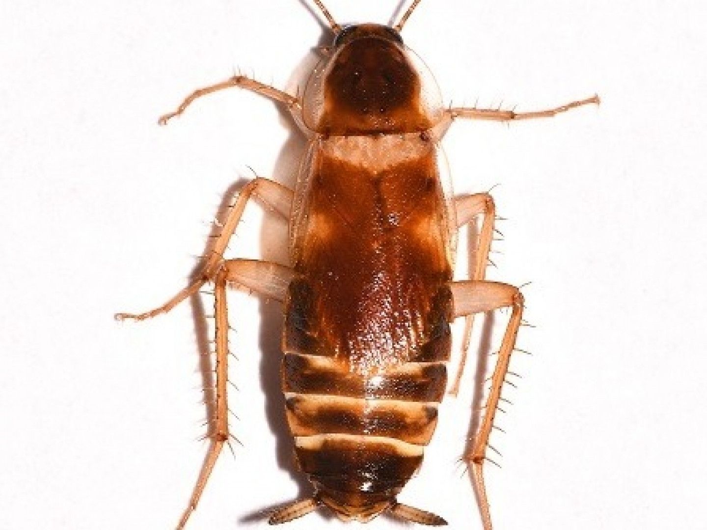 The Brown Banded Roach is rarely seen during the day and have been known to fly. They have two light colored bands across the wings and abdomen. These bands are quite noticeable, can appear to be broken or irregular.